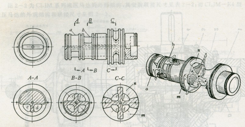 CLJM系列液壓馬達的工作原理可通過圖2-4所示傳統(tǒng)“斯達法”馬達的構(gòu)造(同于國產(chǎn)JMD型)予以認(rèn)識。