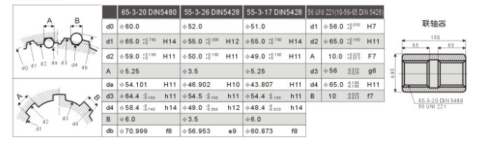 矩形花鍵A                                      錐軸Z                                                 圓柱平鍵B                                 內(nèi)花鍵I