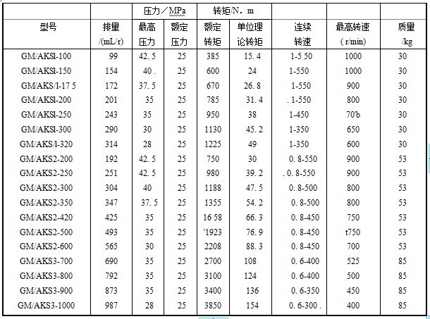 GM/AKS擺缸式柱塞液壓馬達(dá)技術(shù)參數(shù)