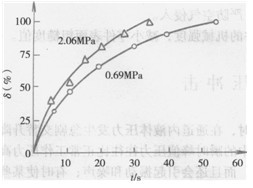 石油基液壓油在靜止?fàn)顟B(tài)下空氣的溶解度與時間的關(guān)系如圖3-37所示,它反映了溶解