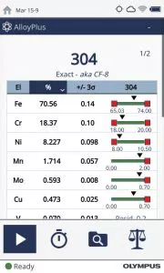 奧林巴斯手持式合金分析儀專門分析檢測(cè)不銹鋼、合金的儀器,能快速檢測(cè)出合金的合金牌號(hào)316、304等。