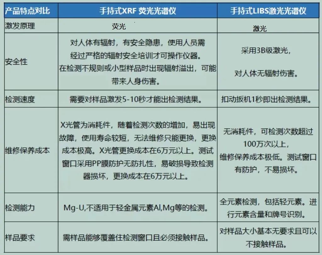 手持LIBS激光光譜儀與手持XRF熒光光譜儀的對比