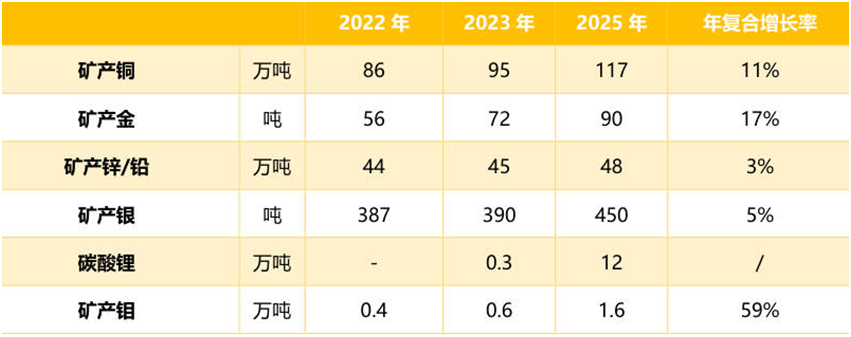 紫金擴(kuò)產(chǎn)計(jì)劃很明確,卡莫阿-卡庫拉銅礦等諸多世界級(jí)礦山仍在擴(kuò)張期,去年收購(gòu)南美洲最大的在產(chǎn)金礦之一 Rosebel 金礦、收購(gòu)國(guó)內(nèi)最大金礦海域金礦30%權(quán)益,收購(gòu) 20%股權(quán)成為招金礦業(yè)第二大股東,強(qiáng)勢(shì)收購(gòu)打下了其礦產(chǎn)金第二階的高增長(zhǎng)的基礎(chǔ)。按照2023年1月30日新修訂的《三年(2023-2025 年)規(guī)劃和 2030年發(fā)展目標(biāo)綱要》,明確到2030年綜合指標(biāo)排名進(jìn)入全球一流礦業(yè)公司行列,銅、金礦產(chǎn)品產(chǎn)量進(jìn)入全球 3-5 位,鋰進(jìn)入全球前10位,發(fā)展規(guī)劃清晰,成長(zhǎng)潛力較大。