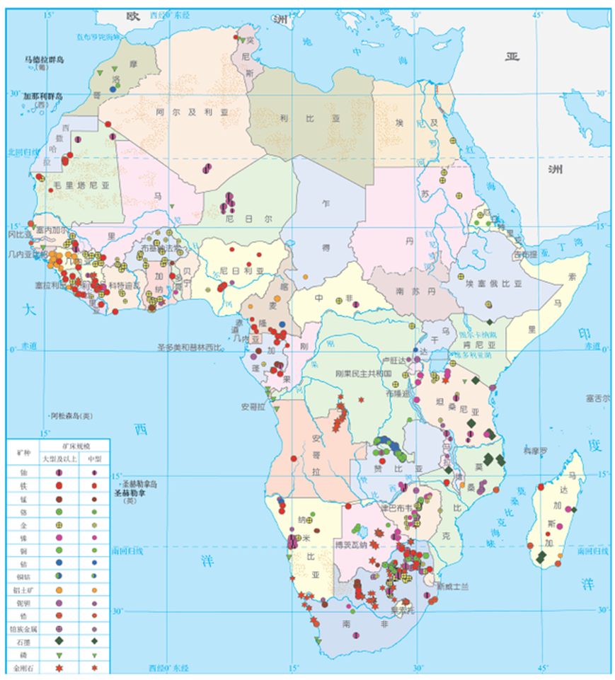 非洲大陸是世界最古老的大陸之一,經(jīng)歷了復(fù)雜的地質(zhì)構(gòu)造-巖漿活動-成礦作用演化過程,成礦地質(zhì)條件優(yōu)越,礦產(chǎn)資源極為豐富,而且礦產(chǎn)種類齊全、儲量巨大,被稱為世界礦產(chǎn)資源的博物館,是世界著名的礦產(chǎn)資源富集地區(qū)之一。