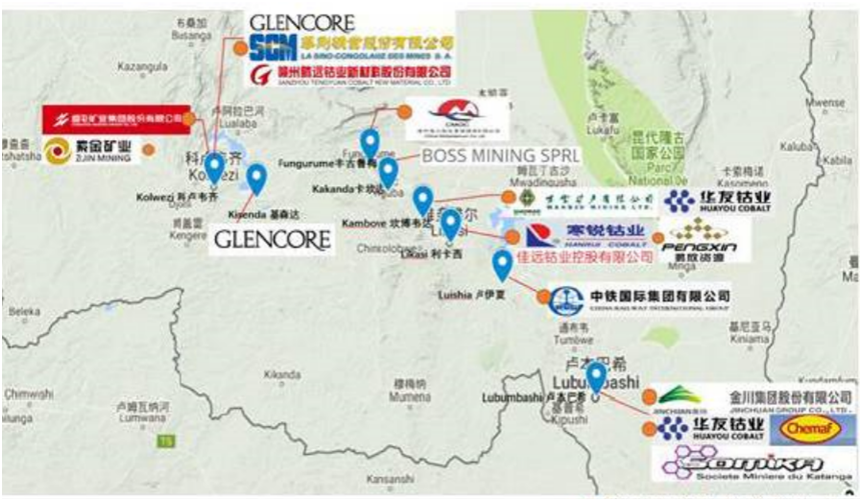 目前,中資在剛果(金)的主要項目包括:紫金礦業(yè)的Kamoa和Kolwezi銅礦、洛陽鉬業(yè)的Tenke Fungurume和Kisanfu銅鈷礦、五礦資源的Kinsevere銅礦、中國有色礦業(yè)集團與剛果(金)國家礦業(yè)總公司的Deziwa礦山等。