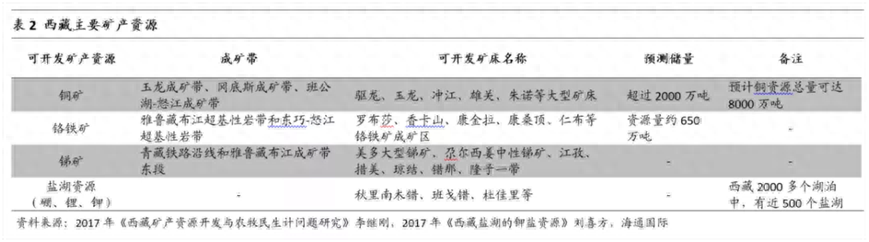 西藏位于亞洲板塊和印度板塊的碰撞地帶,兩大板塊碰撞造山而發(fā)生的成礦作用使西藏?fù)碛袠O為豐富的礦產(chǎn)資源。據(jù)西藏自治區(qū)人民政府官網(wǎng)顯示,西藏目前已發(fā)現(xiàn)的礦種(亞種)達(dá)到103種,其中銅、鉻金屬保有資源儲(chǔ)量與鹽湖鋰資源遠(yuǎn)景儲(chǔ)量位居全國(guó)第一。據(jù)自然資源部的估計(jì),西部蘊(yùn)藏著我國(guó)65%的銅資源、59%的鋅資源和55%的鉛資源。