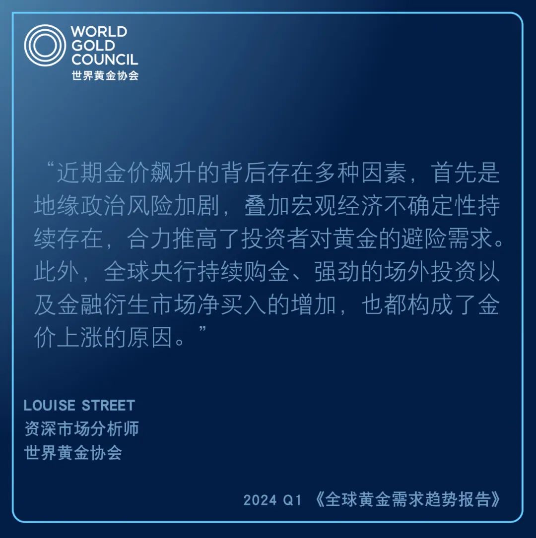 通常情況下,東方市場的投資者對金價的變動更為敏感,傾向于逢低買入,而西方投資者往往會被金價上漲的趨勢所吸引,更偏向于追高。但在今年一季度,上述情況發(fā)生了變化,隨著金價的飆升,中國和印度等市場的投資需求反而大幅增長?!?/p>