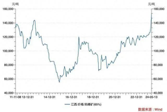 小金屬方面,年初至今,鉬精礦(45%-50%)上漲17.4%,錫上漲24.9%。被譽為“工業(yè)牙齒”的能源金屬鎢的價格在近期沖上了十年新高。江西地區(qū)65%品位的鎢精礦在5月13日的均價達到了15.35萬元/噸,較年初已上漲25%,創(chuàng)下了自2013年以來的新高。