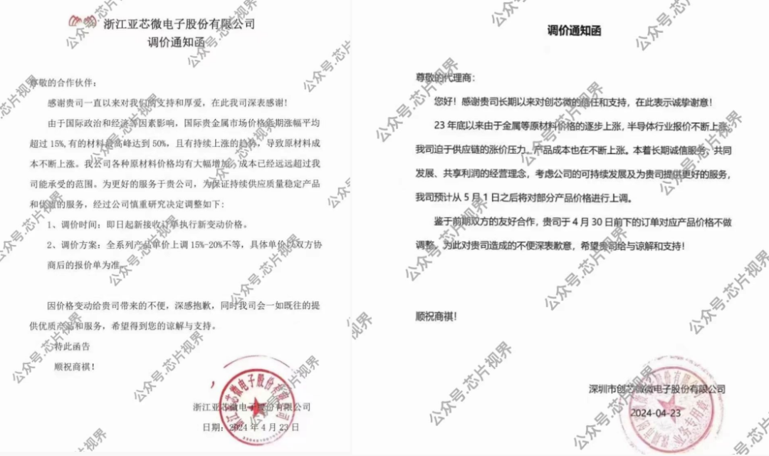 國際貴金屬市場價格持續(xù)上漲,使得芯片制造的原材料成本不斷攀升,芯片廠商面臨巨大的成本壓力,近期紛紛宣布漲價。浙江亞芯微電子表示,全系列產(chǎn)品單價上調15%-20%不等;深圳市創(chuàng)芯微電子表示,5月1日起調漲部分產(chǎn)品價格;南京市智凌芯表示,全線系列產(chǎn)品調漲;無錫華眾微電子表示,部分產(chǎn)品價格上調,幅度為10-20%。