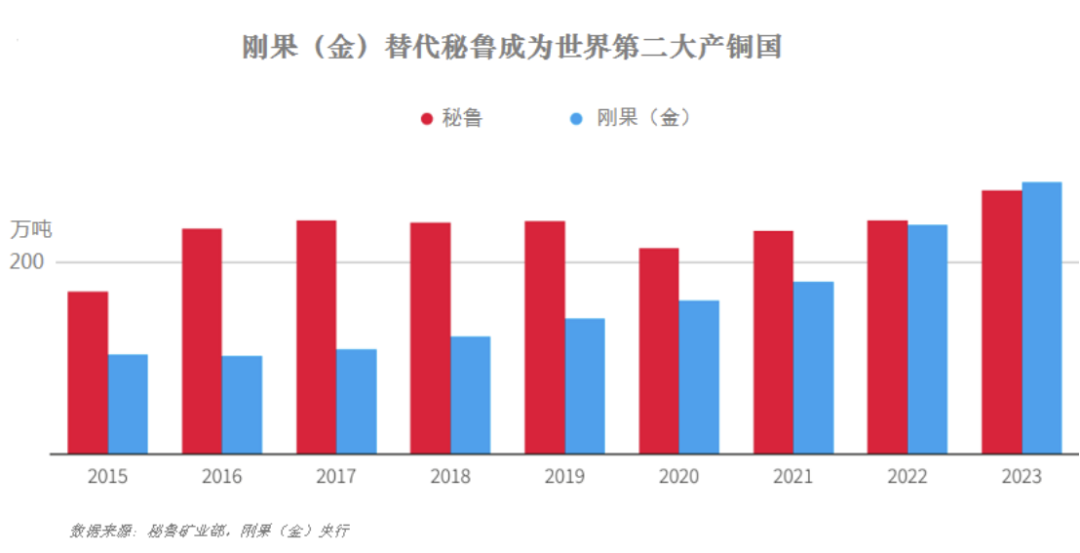 近年來(lái),非洲加丹加銅鈷礦帶成為全球銅礦矚目的焦點(diǎn),尤其剛果(金),是近十年全球銅礦產(chǎn)量增長(zhǎng)最快的國(guó)家,2023年已超過(guò)秘魯成為全球第二大產(chǎn)銅國(guó),加之地處非洲中部,剛果(金)也有了“非洲心臟”之稱。