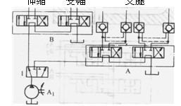 復(fù)聯(lián)系統(tǒng)是以上三種系統(tǒng)的組合,如并聯(lián)一獨(dú)聯(lián)、串聯(lián)一獨(dú)聯(lián)、串聯(lián)一并聯(lián)等系統(tǒng)。圖1. 3-6為并聯(lián)一獨(dú)聯(lián)系統(tǒng)。多路閥A控制一部分并聯(lián)的液壓執(zhí)行機(jī)構(gòu)。多路閥B則控制另一部分并聯(lián)的液壓執(zhí)行機(jī)構(gòu)。但兩個(gè)多路閥所控制的執(zhí)行機(jī)構(gòu)之間是相互獨(dú)立的。所以在B閥操縱的執(zhí)行機(jī)構(gòu)動(dòng)作時(shí),即使誤操作A閥,也不會(huì)使A閥控制的執(zhí)行機(jī)構(gòu)誤動(dòng)作。
