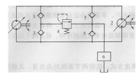 -變量馬達(dá);2-變量泵;3、5-單向閥;4-溢流閥;6-真空吸入閥
